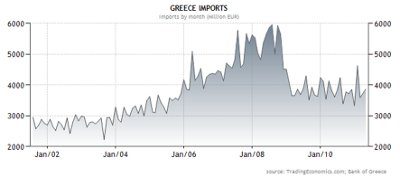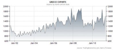Deficyt handlowy kraju jest więc stanem trwałym, Grecja eksportuje trzy razy mniej niż sprzedaje za granicę.