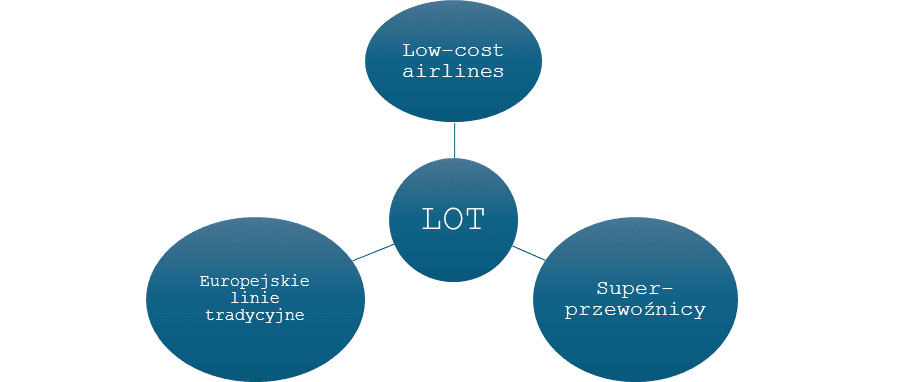 Każdy z powyższych rywali posiada jedną lub kilka przewag: cen biletów, kosztów wewnętrznych, siatki połączeń, reputacji, jakości obsługi. Te koła młyńskie w perspektywie kilku lat mogą „zmiażdżyć” LOT i to pomimo tego, że ostatnie lata są historią zauważalnego sukcesu. Równorzędną rywalizację LOT może nawiązać jedynie ze średnimi/małymi liniami europejskimi: Finnair, TAP, Aegean.